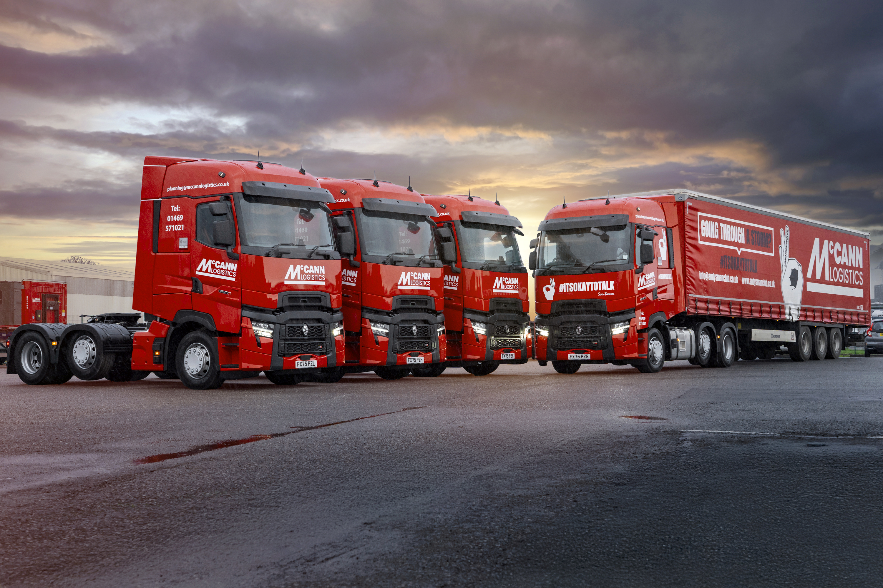 McCann Logistics has strengthened its UK fleet with the addition of 12 new Renault Trucks T High 480 6x2 TML Turbo Compound tractor units, marking the company’s first-ever move to the Renault Trucks brand. Two of the new vehicles will proudly display ANDYSMANCLUB’s powerful “It’s okay to talk” message, further strengthening McCann’s partnership with the men’s mental health charity.